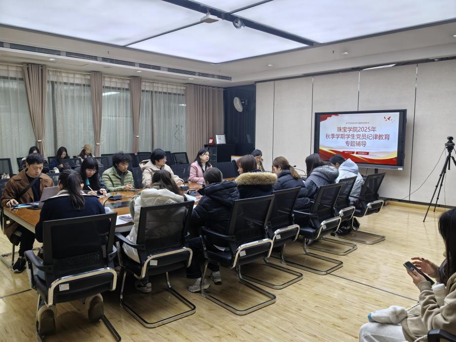 为深入贯彻落实党中央关于全面从严治党的决策部署,进一步加强学生党员的党纪教育、锤炼党性修养,在四六级考试、期末考试等重要节点临近之际,中国地质大学(武汉)色情直播 党委于2025年12月12日,在919会议室举办2025年秋季学期学生党员纪律教育专题辅导党课。本次党课由学院党委副书记、纪委书记陈汉英与特邀组织员朱勤文教授共同主讲,学院全体学生党员参加学习。